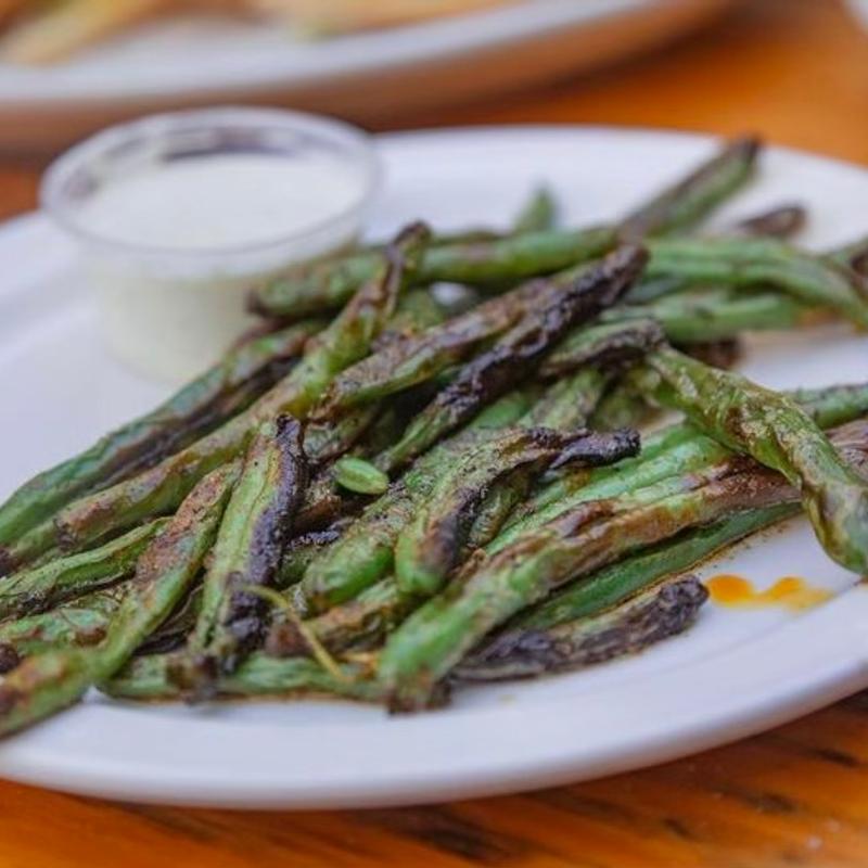 Crisp, fresh green beans Cajun-seasoned & charred in our wood-fired brick oven.